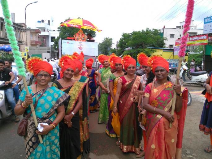 शुक्रवारी सकाळी ११ वाजता प्रोफेसर कॉलनी चौक ते कोहिनूर मंगल कार्यालय दरम्यान भव्य मिरवणूक काढून श्रींची महिलांच्या हस्ते विधीवत स्थापना करण्यात आली.