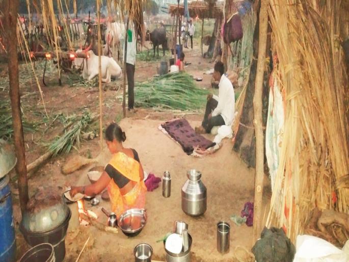 अनिल साठे । शेवगाव : गावाकडे सततचा दुष्काळ पाठीला पूजलेला, पाण्याअभावी रानं पडीक पडले आहेत, हाताला काम नाही. लेकरांचे भविष्य घडविण्यासाठी मुकादमाकडून उचल घेऊन वर्षातील सहा महिने कारखान्यावर ऊस तोडायला यावे लागते. अशी भावना ऊस तोडणी मजुरांनी ‘लोकमत’ प्रतिनिधीकडे व्यक्त केली. कोयता हाच देव, उसाचे थळ हेच मंदिर अन् सपासप ऊस तोडणी करणे हीच पूजा या भावनेतून आम्ही काम करतो, असेही त्यांनी सांगितले.‘लोकमत’ प्रतिनिधीने गंगामाई (ता. शेवगाव) साखर कारखान्याच्या एका सात कोयत्याच्या टोळीत ऊस तोडणी मजुरांच्या सानिध्यात दोन दिवस राहुन त्यांचे काम अनुभवले. मजूर हे चिंचपूर (ता. पाथर्डी) येथील होते. त्यांच्यासोबत काम करून त्यांच्या व्यथा, अडचणी जाणून घेतल्या. वीज, पाणी, स्वच्छता गृह, किराणा, पंक्चर दुकान, हॉटेल, कटाई, पिठाची गिरणी आदी सुविधा कारखाना परिसरात होत्या. मात्र आरोग्य, प्राथमिक उपचार, जनावरांचा डॉक्टर, साखर शाळा आदी सुविधांचा अभाव दिसला. वाहनांची रहदारी असलेल्या रस्त्यावर पुरेशी वीज व्यवस्था होती. मात्र कामगारांच्या कोप्या भोवताली अंधारच होता.ऊस तोडणी मजुरांचा दिवस मध्य प्रहरी एकच्या सुमारास होतो. महिला उठून न्याहारीसाठी सायंकाळी केलेली भाकरी, भाजी कापडी फडक्यात बांधून घेतात. सोबत पिण्यासाठी पाणी दुधाच्या कॅनमधे घेतले जाते अन् सुरू होतो उसाच्या फडाकडे प्रवास. मुकादम विष्णू दशरथ बडे यांच्यासह टोळीतील त्यांचे सहकारी बुवासाहेब बडे, अशोक त्रिंबक बडे, गणेश आजीनाथ बडे, संजय होडशीळ, शाहीराम महादेव बडे, मारुती अर्जुन कावळे हे पत्नीसह कारखान्यापासून रात्री १ वाजून ३६ मिनिटांनी घोटण, खुंटेफळमार्गे दादेगावकडे बैलगाड्यांचा ताफा घेऊन निघाले. पहाटे ४ वाजता उसाच्या फडावर पोहोचले. तेथे बैलांना वाढे टाकून सर्वांनी कोयत्याने सापसप ऊस तोडायला सुरवात केली. प्रत्येक जोडप्याने सºया वाटून घेतल्या होत्या. सकाळी सूर्य उगवल्यावर सातच्या सुमारास ऊस तोडायचे थांबवले. महिलांनी उसापासून वेगळे केलेले वाढे गोळा करत पेंढ्या बांधण्यास सुरवात केली. पुरुषांनी ऊस बांधत बैल गाडीत टाकण्यास सुरवात केली. मध्ये पाच मिनिटाचा ब्रेक घेत सोबत आणलेले बिस्किट पाण्याबरोबर खाल्ले व पुन्हा काम सुरू केले. पुरुष मंडळींइतकीच मेहनत महिलाही घेत होत्या.दहाच्या सुमारास गाडीत भरलेला ऊस दोरीच्या सहाय्याने बांधत बैलांना जुंपले. पुन्हा कारखान्याकडे परतीचा प्रवास सुरू झाला. प्रवासात न्याहारी करत दुपारी साडेबाराच्या सुमारास कारखान्याच्या वजन काट्यावर गाड्या पोहोचल्या. जवळपास सगळ्यांनी दोन टन ऊस गव्हाणीत टाकला होता. ९०० ते १००० रूपयांची कमाई झाली होती. ती कमाई दोघांची नव्हती तर चौघांची होती. दो