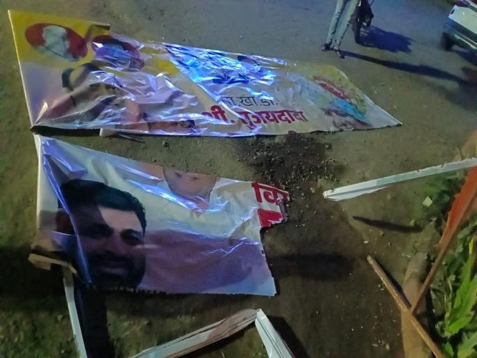 अकोले नाका परिसरात लावण्यात आलेले विखे यांचे फलक फाडण्यात आले आहेत. विखे समर्थकांच्या काही वाहनांचीही तोडफोड झाली आहे. तालुका पोलीस स्टेशनला डॉ. सुधीर तांबे, जयश्री थोरात, दुर्गाताई तांबे, इंद्रजित थोरात, अमर कतारी, सीताराम राऊत आदींसह रात्री उशिरा मोठ्या संख्येने कार्यकर्ते जमले होते. सुजय विखे, वसंत देशमुख यांच्यावर गुन्हा दाखल करावा अशी कार्यकर्त्यांची मागणी आहे. या घटनेमुळे संगमनेर तालुक्यात तणाव निर्माण झाला आहे.