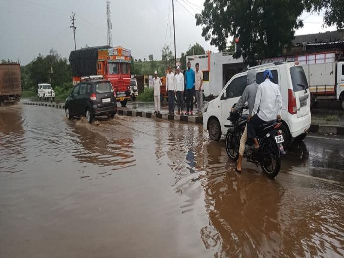 नगर-पुणे महामार्ग शंभर फूट खचला; कामरगाव रस्त्याला तळ्याचे स्वरुप
