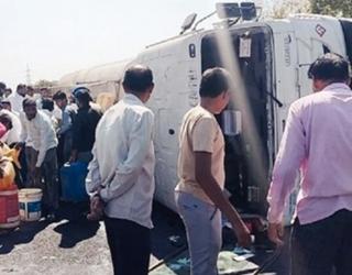 अहिल्यानगर : टँकर पलटी होताच उडाली झुंबड; डिझेल भरण्यासाठी टिप, ड्रमसह नागरिकांची अपघातस्थळी गर्दी