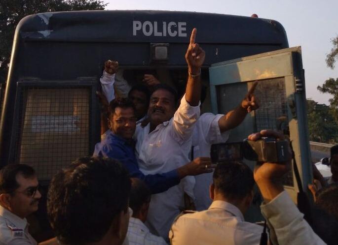 राहुरी : ‘ऊस आमच्या घामाचा, नाही कुणाच्या बापाचा’, उसाला ३४०० रूपये भाव मिळालाच पाहिजे, कोण म्हणतं देणार नाही, घेतल्याशिवाय राहणार नाही, अशा घोषणा देत राहुरी तालुका स्वाभिमानी शेतकरी संघटनेच्या कार्यकर्त्यांनी शुक्रवारी नगर-मनमाड महामार्गावर ऊस वाहतूक करणारी वाहने अडवून धरली. अधिका-यांनी कार्यकर्त्यांशी चर्चा करून आंदोलन मागे घेण्याची केलेली विनंती झिडकरल्याने सायंकाळपर्यंत आंदोलन सुरू होते. सायंकाळी कार्यकर्त्यांना राहुरी पोलिसांनी अटक केली आहे.राहुरी तालुका स्वाभिमानी शेतकरी संघटनेचे कार्यकर्ते शुक्रवारी सकाळी तालुकाध्यक्ष रवींद्र मोरे यांच्या नेतृत्वाखाली राहुरी कृषी उत्पन्न बाजार समितीच्या आवारात जमले. गुहा येथे नगर-मनमाड महामार्ग अडविण्याचा कार्यकर्त्यांनी अचानक निर्णय घेतला. सकाळी ११ वाजता कार्यकर्त्यांनी गुहा येथे जाऊन ऊस वाहतूक करणारी वाहने पुलावर अडविली. भाव जाहीर झाल्याशिवाय आंदोलन मागे घेतले जाणार नाही़ आम्हाला अटक करा किंवा भाव जाहीर करा, अशी मागणी कार्यकर्त्यांनी केली़नगरच्या प्रादेशिक साखर सहसंचालक कार्यालयातील प्रकाश सोनटक्के, प्रकाश सैंदाने, तहसीलदार अनिल दौंडे, पोलीस निरीक्षक प्रमोद वाघ यांनी घटनास्थळी जाऊन कार्यकर्त्यांशी चर्चा केली. उसाचा उतारा व भाव यासंदर्भात साखर कारखान्यांशी संपर्क साधून माहिती घेतली जाईल़ आंदोलन मागे घ्यावे, असे आवाहन अधिका-यांनी केले. त्यावर कार्यकर्त्यांचे समाधान झाले नाही. आरपार लढाई असून अटक झाली तरी चालेल, पण आम्ही माघार घेणार नाही, अशी भूमिका कार्यकर्त्यांनी घेतली.आंदोलनामध्ये स्वाभिमानी शेतकरी संघटनेचे मोरे, प्रकाश देठे, सतीश पवार, अरूण डौले, भगिरथ पवार, राहुल करपे, दिनेश वराळे, अनिल इंगळे, असिफ पटेल, राजेंद्र शिंदे, तुषार शिंदे, विजय तोडमल, संदीप शिरसाट, प्रमोद पवार, रामकृष्ण जगताप, दिलावर पठाण आदी कार्यकर्ते सहभागी झाले.