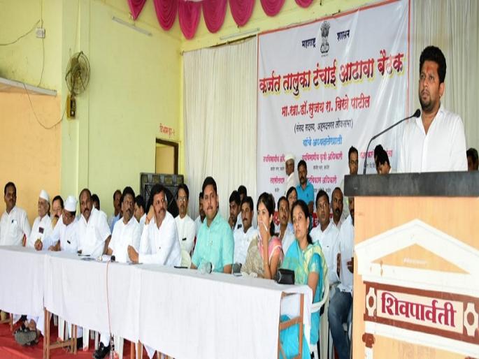कर्जत : खासदार डॉ. सुजय विखे यांच्या अध्यक्षतेखाली आज झालेल्या कर्जत तालुका टंचाई आढावा बैठकीत पिण्याचे पाणी, टँकर व छावण्यांबाबत तक्रारींचा पाऊस पडला.‘शासन आपल्या दारी’ योजनेची प्रभावीपणे अंमलबजावणी केल्यास लोकांचे प्रश्न तातडीने मार्गी लागून अधिकारी व लोकांचा संपर्क वाढेल, असा सल्ला विखे यांनी यावेळी दिला. येत्या पाच वर्षांमध्ये आपण दक्षिणेतील कामकाजाची पद्धत बदलणार आहोत. प्रत्येक गावातील प्रलंबित प्रश्न मला लेखी स्वरूपात कळवा. ते कसे सुटतील? यासाठी आपण वैयक्तिक लक्ष घालून ते सोडवू अशी ग्वाही त्यांनी दिली.या बैठकीत जनावरांच्या छावण्या, पाण्याचे टँकर, रोजगार हमी योजना, कर्जतचा पाणी व वीज प्रश्न, सामाजिक वनीकरण विभागाची कामे याबाबत चर्चा झाली. ८४ टँकरने पाणी पुरवठा केला जात आहे. पण मंजूर खेपा वेळेवर व नियमित होत नसल्याच्या तक्रारी अनेकांनी केल्या. भीमा नदीतील पाणी संपल्यामुळे कर्जत शहराला गेल्या पंचवीस दिवसांपासून पाणी नाही. कर्जतला पाणी पुरवठा करण्यासाठी १८ टँकर मंजूर केले आहेत. पण याचा ठेका दिलेल्या संस्थेकडे टँकरची टंचाई असल्यामुळे कर्जतला फक्त दोन टँकरने पाणी पुरवठा केला जात आहे. कर्जत तालुक्यातील विविध ठिकाणी वृक्ष लागवड करण्याचा निर्णय अनेक ग्रामपंचायती व विविध संस्थांनी घेतला आहे. मात्र सामाजिक वनीकरण विभागाचे अधिकारी व कर्मचारी सहकार्य करीत नसल्याच्या तक्रारी करण्यात आल्या.या बैठकीस नगराध्यक्षा प्रतिभा भैलुमे, जिल्हाबँकेचे बँकेचे संचालक अंबादास पिसाळ, उपनगराध्यक्ष नामदेव राऊत, भाजपचे तालुकाध्यक्ष अशोक खेडकर, पंचायत समितीच्या सभापती साधना कदम, उपसभापती प्रशांत बुद्धिवंत, पंचायत समिती सदस्य राजेंद्र गुंड, शिवसेनेचे तालुकाप्रमुख दीपक शहाणे, स्वप्निल देसाई. दादासाहेब सोनमाळी. कृषी उत्पन्न बाजार समितीचे उपसभापती प्रकाश शिंदे. राशीनचे उपसरपंच शंकरराव देशमुख, रासपचे जिल्हाध्यक्ष रविंद्र कोठारी,डिकसळचे सरपंच अॅड. महेंद्र शिंदे, रिपाइंचे तालुकाध्यक्ष संजय भैलुमे, शहराध्यक्ष सागर कांबळे. संतोष खळगे. नगरसेवक बापूराव नेटके, अनिल गदादे, सचिन सोनमाळी, हर्षदा काळदाते,निता कचरे यांच्यासह अधिकारी, कर्मचारी उपस्थित होते.छावण्यांचे ३१ कोटी पडूनकर्जत तालुक्यात ९७ छावण्या सुरू आहेत. छावणी चालकांना होत असलेल्या त्रासाचा या बैठकीत उहापोह झाला. आॅनलाईन पद्धत, रोज बदलणारे नियम, बारकोड पद्धत, बिल मंजूर करण्यासाठी १० अधिकारी व कर्मचाऱ्यांच्या लागणाºया स'ा पाच प्रकारचे आॅडिट, विविध प्रकारच्या तपासण्या या प्रकारांमुळे छावणी चालक वैतागले आहेत. बिले काढण्याच्या किचकट प्रक्रियेमुळे कर्जत तालुक्यातील छावणी चालकांना बिलापोटी वाटप क