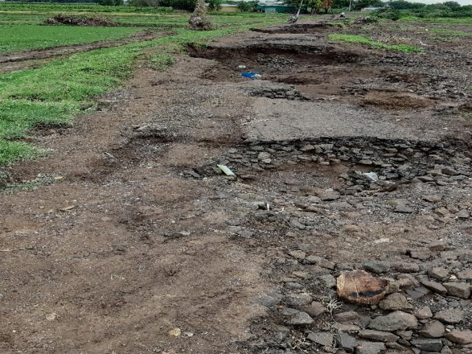 मायगाव देवीतील रस्ता पुरामुळे गेला वाहून