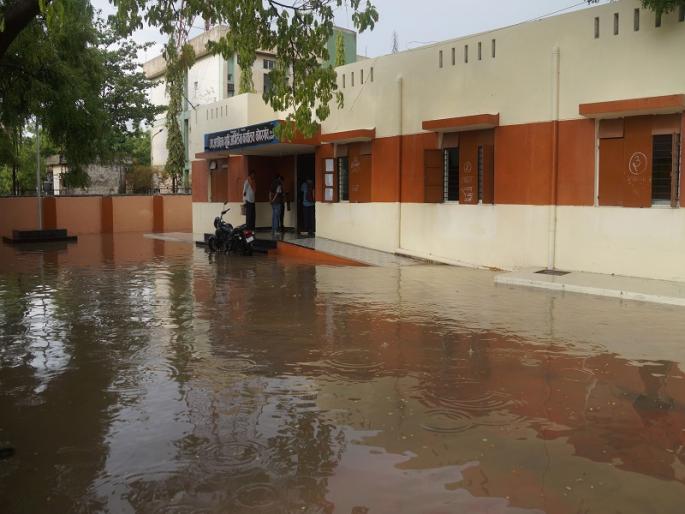 कार्यालय परिसरात साचले पावसाचे पाणीविशेष म्हणजे कार्यालयाच्या बाहेरील परिसरात पेव्हींग ब्लॉक बसविण्यात आले आहे. परंतु त्यावरील पाणी वाहून जाण्यासाठी बनविण्यात आलेल्या गटारीचे ढापे खूप उंचीवर बसविण्यात आले आहे. त्यामुळे परिसरात साचलेले पावसाचे पाणीही त्या गटारीतून वाहत नसल्याने या परिसरातच पाण्याचे मोठे तळे साचले होते.