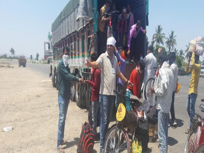 अहमदनगर : संगमनेरमधून मध्यप्रदेश व बिहारकडे जाणा-या परप्रांतिय कामगारांच्या मदतीसाठी राष्ट्रवादी काँग्रेसचे जिल्हाध्यक्ष कपिल पवार धावून आले. परराज्यात जाणा-या ट्रकला भाडे ठरवून ६०० कामगारांची घरी जाण्याची व्यवस्था तर केली़ बरोबर जेवण आणि पाण्याचे बॉक्स देऊन कामगारांना निरोप देण्यात आला. राष्ट्रवादी युवकचा हा संगमनेरी पॅटर्न चांगलाच चर्चेत आला आहे. इतर तालुक्यांतही हा उपक्रम राबविण्यात येणार असल्याचे जिल्हाध्यक्ष कपिल पवार यांनी सांगितले़. लॉकडाऊन काही अंशी शिथिल करीत राज्य सकरारने कामगारांना घरी जाण्यास मुभा दिली. मात्र प्रशासन आणि कामगार यांच्यात समन्वय होत नसल्याने कामगार पायी चालत घराकडे निघाले आहेत. कामगारांचे लोंढे महामार्गाने चालत आहेत. संगमनेरमधून सुमारे ६०० कामगार मध्यप्रदेश व बिहारकडे पायी निघाले होते. ही बाब राष्ट्रवादी युवकचे जिल्हाध्यक्ष कपील पवार यांच्या निदर्शनास आली. महामार्गावर थांबून कामगारांना एकत्र केले़. त्यांच्या जेवणाची व्यवस्था केली. या मार्गे मोकळ्या जाणा-या ट्रक थांबून त्यांनी कामगार घेऊन जाण्याची विनंती केली. काहींना भाडे ठरवून दिले़ ट्रक चालकही कामगारांना घेऊन जाण्यास तयार झाले. संगमनेरचे तहसीलदारांनीही पवार व त्यांच्या कार्यकर्त्यांचे आभार मानत कामगारांना एकत्र करण्याचे आवाहन केले़. आता इतर तालुक्यांतील तालुकाध्यक्षांनाही कामगारांना घरी जाण्यासाठी मदत करण्याचे आवाहन पवार यांनी केले असून, प्रशासन आणि कामगारांमध्ये समन्वय साधून त्यांची घरी जाण्याची व्यवस्था केली जाणार असल्याचे पवार म्हणाले़.
