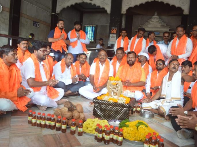 आरक्षण मिळाल्यानं मराठा महासंघाच्या वतीने शनीदेवास अभिषेक