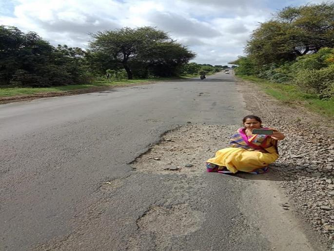 माहीजळगाव : राष्ट्रवादी काँग्रेसच्या ग्रामीण महिला जिल्हाध्यक्ष मंजुषा गुंड यांनी अहमदनगर-सोलापूर महामार्गावरील रस्त्यावरील खड्ड्यात सेल्फी काढत रस्त्याच्या दुरावस्था दाखविली. हा फोटो सोशल मीडियावर टाकत पालकमंत्री राम शिंदे यांच्यावर निशाणा साधला. हा रस्ता पालकमंत्री राम शिंदे यांच्या मतदारसंघातील आहे. त्यामुळे रस्त्यावर खड्डे की खड्ड्यात रस्ते असा प्रश्न प्रवाशाना पडतोय, असेही गुंड यांनी म्हटले आहे. गुंड यांनी पालकमंत्र्यांवर खड्ड्यांच्या माध्यमातून निशाणा साधल्याने ही पुढील राजकारणाची नांदी ठरत असल्याचे दिसत आहे. २०१९ च्या निवडणुकीसाठी गुंड अधिक आक्रमक होऊ लागल्या आहेत. जिल्हा परिषदेच्या अध्यक्ष पदाचा कार्यकाल संपताच त्यांची जिल्हाध्यक्ष पदी वर्णी लागली जिल्हाध्यक्ष पदाची सूत्रे हाती घेताच त्यांनी पक्षाच्या बांधणीसाठी विविध उपक्रम घेतले. कर्जत तालुक्यातील अनेक रस्त्यांची दुरवस्था झालेली हा प्रश्न जिव्हाळ्याचा प्रश्न मांडल्याची प्रतिक्रिया प्रवाशांनी व्यक्त केल्या.