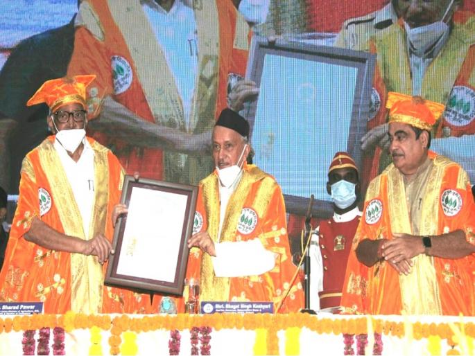 राहुरीच्या महात्मा फुले कृषी विद्यापीठाचा पदवीदान समारंभ गुरुवारी झाला. त्यामध्ये पवार व गडकरी यांना मानद ‘डॉक्टर ऑफ सायन्स’ ही पदवी प्रदान करण्यात आली. या कार्यक्रमात बोलताना राज्यपालांनी दोघांवरही कौतुकाचा वर्षाव केला. ते म्हणाले, पवार आणि गडकरी हे दोघेही केवळ कृषीच नव्हेतर, विविध क्षेत्रांत कार्यरत आहेत.