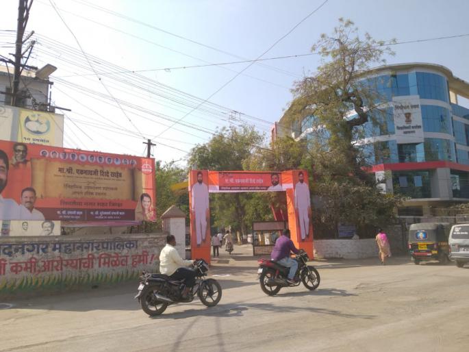 मंत्री शिंदे यांचा गुरुवारी नियोजित दौरा होता. नगरपालिका आणि महापालिकेच्या कामाकाजाशी संबंधित ते बैठका घेणार होते. मात्र त्यांचा गुरुवारचा दौरा रद्द झाला असून ते आता शुक्रवारी येणार आहेत. दरम्यान मंत्री शिंदे येणार असल्याने शिवसेनेतर्फे जिल्हाधिकारी कार्यालयाच्या कमानीवरच शिंदे यांचे फलक लावण्यात आले आहेत. एरवी जिल्हाधिकारी कार्यालयाच्या आवारात उपोषण करण्यास, फलक लावण्यास मनाई करण्यात आलेली आहे. तरीही प्रशासकीय इमारतीवरच फलक लावल्याने आश्चर्य व्यक्त झाले आहे. आता जिल्हाधिकारी काय कारवाई करतात, याकडे लक्ष लागले आहे.