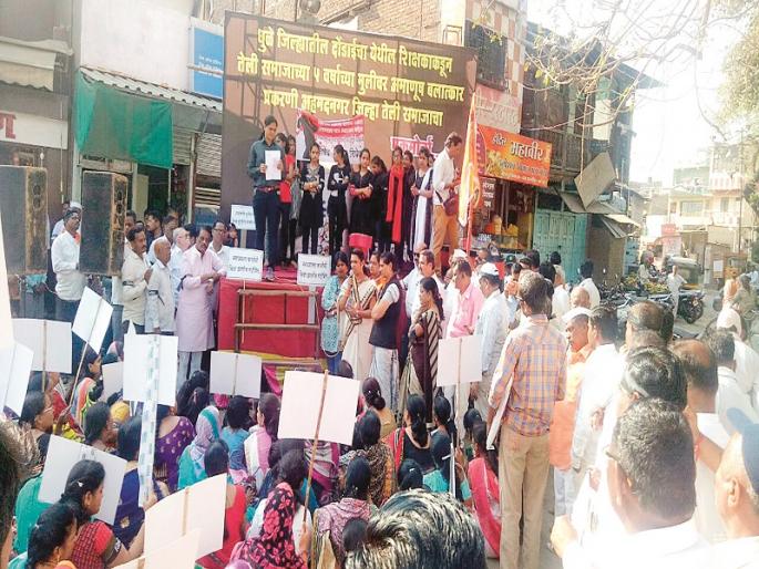 अहमदनगर : धुळे जिल्ह्यातील दोंडाईचा येथील पाच वर्षीय मुलीवर अमानुष अत्याचार करणारा व त्यास पाठिशी घालणा-या व्यक्तींना फाशीची शिक्षा देण्यात यावी या मागणीसाठी अहमदनगर जिल्हा सकल तेली समाजातर्फे तेलीखुंट ते जिल्हाधिकारी कार्यालय अशा मूकमोर्चाचे आयोजन करण्यात आले होते. या मोर्चात विविध सामाजिक संघटनांनीही सहभाग घेतला.