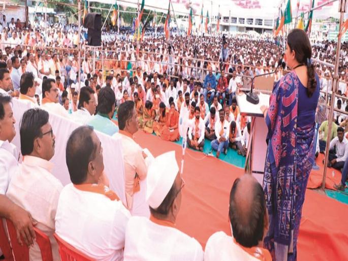 शेतक-यांवर ते गोळी चालवतात-स्मृती इराणी; श्रीगोंद्यात पाचपुतेंच्या प्रचारार्थ सभा