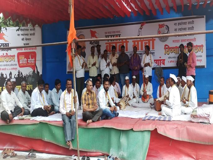 कोपरगाव : मराठा आरक्षणासाठी शहरासह तालुक्यात गुरुवारपासून (९ आॅगस्ट ) बंद पाळत सुरवात करण्यात आलेले ठिय्या आंदोलन आज तिस-या दिवशीही सुरु आहे. आज भजन कीर्तन करून आंदोलन सुरू आहे.कोपरगाव तालुक्यातील सडे येथील श्रीराम भजनी मंडळ व सकल मराठा समाजाच्या बांधवानी शनिवारी कोपरगाव तहसील कार्यालयासमोरील बेमुदत ठिय्या आंदोलनाच्या ठिकाणी भजन कीर्तन केले. जोपर्यत आरक्षण मिळत नाही तोपर्यंत शाततेच्या मार्गाने आंदोलन सुरूच ठेवले जाणार असल्याचे संयोजकांनी सांगितले. या आंदोलनासाठी तालुक्यातील प्रत्येक गावातील समाज बांधव दररोज या ठिकाणी येऊन ठिय्या आंदोलन करणार असल्याची माहिती मराठा समाजाच्या आंदोलकांनी दिली. भारूड तसेच जनजागरणाचे कार्यक्रम करणार असल्याचे आंदोलकांनी सांगितले.यावेळी व्यासपीठावर साखळी पद्धतीनुसार ठिया आंदोलनप्रसंगी अनिल गायकवाड, अमित आढाव, दिनेश पवार, दादा आवारे, विनायक भगत, अमोल लोखंडे, बाळासाहेब शिंदे, साई नरोडे, भुषण पाटणकर, दादा आवारे, प्रतीक कावळे, कुलदीप पवार, सागर नरोडे, भूषण मुळीक, निखिल डांगे, अक्षय आंग्रे, बालाजी गोर्डे, अजित कोताडे, अमोल थोरात,अमोल लोखंडे मराठा समाज बांधव उपस्थित होते .