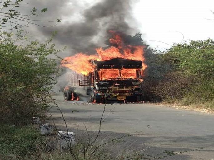 बोटा : संगमनेर तालुक्यातील मांडवे बुद्रूक गावच्या हद्दीत मुळा नदीवरील पुलाजवळ ट्रक व दुचाकीच्या झालेल्या अपघातात दुचाकीवरील एक जण ठार तर एक जण जखमी झाला. हा अपघात शनिवारी सकाळी साडे नऊच्या सुमारास झाला असून त्यानंतर अज्ञातांनी हा ट्रक पेटवून दिला आहे.शरद मच्ंिछद्र डोलनर (वय २५, रा. मांडवे बुद्रूक, ता. संगमनेर) असे या अपघातातील मृत्यू झालेल्या व्यक्तीचे तर विठ्ठल नामदेव बाचकर असे जखमी झालेल्या व्यक्तीचे नाव आहे. अपघाताची माहिती मिळताच घारगाव पोलीस ठाण्याचे पोलीस निरीक्षक अंबादास भुसारे हे पोलीस पथकासह घटनास्थळी दाखल झाले. अज्ञात व्यक्तींनी ट्रक पेटवून दिला.