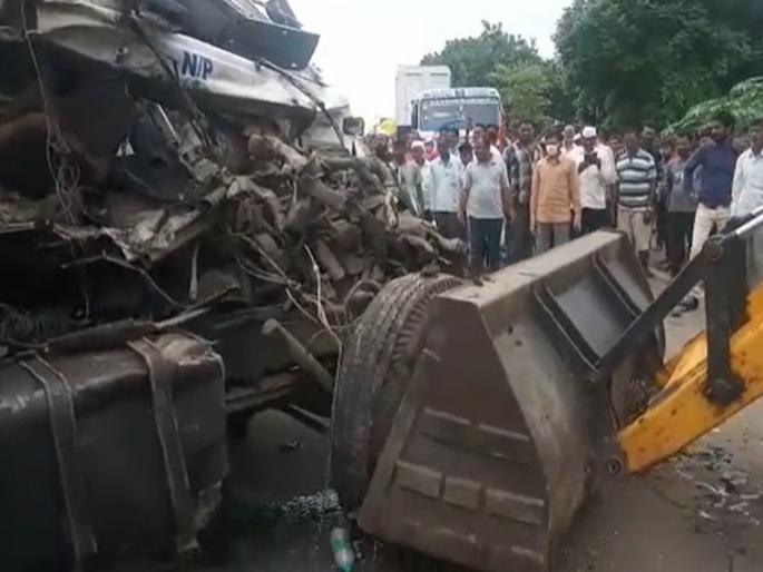 नागपूर -मुंबई राष्ट्रीय महामार्गावर दोन कंटेनचा समोरा समोर अपघात झाला.अपघात ग्रस्त कंटेनर हटवण्याचे काम जेसीबीच्या सहाय्याने सुरू झाले आहे. pic.twitter.com/GtDA8BlTJJ