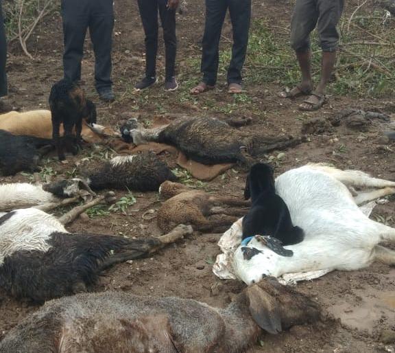 घारगाव (जि. अहमदनगर) : अवकाळी पावसाच्या तडाख्यामुळे संगमनेर तालुक्यातील नांदूर खंदरमाळ व खंदरमाळवाडी शिवारात २० मेंढ्या व कोकरांचा मृत्यू झाल्याची घटना (२ डिसेंबर) गुरुवारी सकाळी घडली. यात मेंढपाळांचे लाखो रुपयांचे नुकसान झाले आहे.