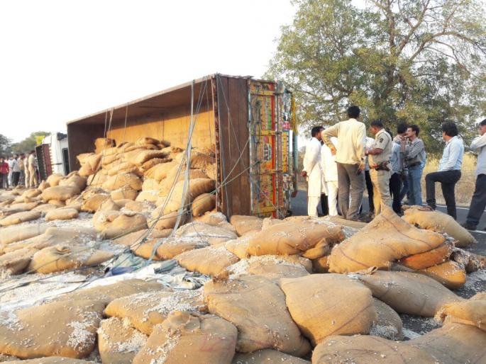 ठळक मुद्देअकोला जिल्ह्यातील बाळापूर -पातूर रस्त्यावरील बाघ फाट्यावर सायंकाळी ४ वाजताचे सुमारास घडली घटनाप्रकट दिन महोत्सवात सहभागी होण्यासाठी वाशिम जिल्ह्यातील उमरा कापसे येथून शेगाव येथे जात होती पायदळ दिंडी ट्रकमधील सरकीच्या पोत्यांखाली दबल्याने चार भाविक जागीच ठार झाले. तर तीन गंभीर जखमी झाले.