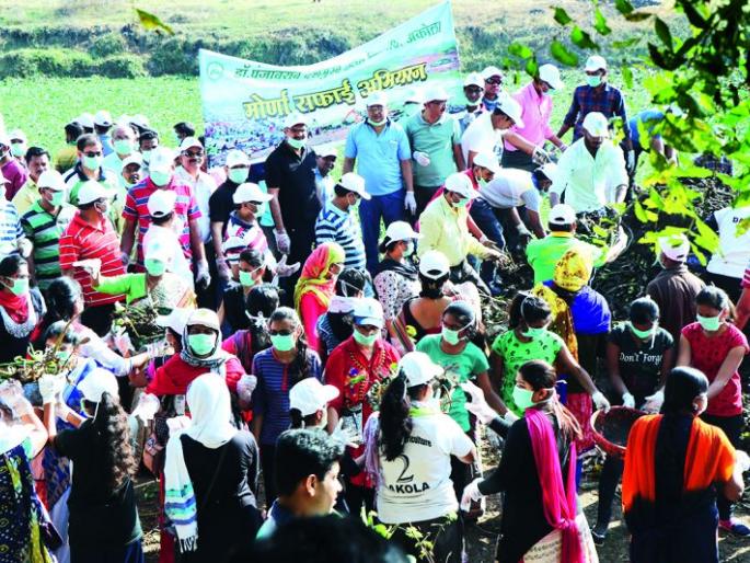 लोकमत न्यूज नेटवर्कअकोला : ‘मोर्णा स्वच्छता मिशन’मध्ये सहाव्या टप्प्यात शनिवार, १७ फेब्रुवारी रोजी लोकसहभागातून राबविण्यात आलेल्या मोर्णा नदी स्वच्छता मोहिमेत लोकप्रतिनिधींसह अधिकारी-कर्मचारी, विद्यार्थी व नागरिकांनी सक्रिय सहभाग घेतला. त्यामुळे मोर्णा स्वच्छता मोहिमेला अकोलेकरांचा उत्स्फूर्त प्रतिसाद मिळाला. सहाव्या टप्प्यात शनिवारी सकाळी ८ ते ११.३0 वाजेपर्यंत राबविण्यात आलेल्या स्वच्छता मोहिमेत गीता नगर भागातील मोर्णा नदीकाठी नागरिकांची गर्दी झाली होती. मोर्णा स्वच्छता मोहिमेत खासदार संजय धोत्रे, आमदार रणधीर सावरकर, महापौर विजय अग्रवाल, जिल्हाधिकारी आस्तिककुमार पाण्डेय, डॉ.पंजाबराव देशमुख कृषी विद्यापीठाचे कुलगुरु डॉ.विलास भाले, उपविभागीय अधिकारी प्रा.संजय खडसे, उपजिल्हाधिकारी राजेश खवले, मूर्तिजापूरचे तहसीलदार राहुल तायडे, उपमहापौर वैशाली शेळके, नगरसेविका गीतांजली शेगोकार, उषा विरक, नगरसेवक हरीश आलीमचंदाणी, माजी महापौर सुमन गावंडे, मनपा अतिरिक्त दीपक पाटील, भाजपचे महानगराध्यक्ष किशोर मांगटे पाटील, शहर सचिव वर्षा गावंडे, अंजली जोशी, जिल्हा माहिती अधिकारी प्रमोद धोंगडे, ‘निमा’चे डॉ.संजय तोष्णीवाल, डॉ.मिलिंद बडगुजर, डॉ.माया ठाकरे, डॉ.अरविंद गुप्ता, अ.भा.मराठी पत्रकार परिषदेचे अध्यक्ष सिद्धार्थ शर्मा, जिल्हा पत्रकार संघाचे अध्यक्ष शौकतअली मीरसाहेब यांच्यासह डॉ.पंजाबराव देशमुख कृषी विद्यापीठ व विविध शाळा-महाविद्यालयांचे विद्यार्थी, महिला बचत गट, वस्ती स्तर संघ आणि स्वयंसेवी संस्था व सामाजिक संघटनांच्या पदाधिकार्यांसह नागरिकांनी सहभाग घेतला. स्वच्छता मोहिमेत नदीपात्रातील जलकुंभी व कचरा काढण्यात आला.