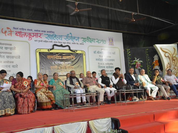 अकोला : पाचवे बालकुमार साहित्य संमेलन हे केवळ साहित्यापुरते मयार्दीत राहीले नसून, नृत्य, संगीत, लोककलांना सामावून घेत एक सिमोल्घंन करण्याचा सफल प्रयत्न आहे. या माध्यमातून एक नवा परिपाठ घालून घेतला असल्याचे मत जेष्ठ साहित्यिक डॉ. श्रीकांत तिडके यांनी व्यक्त केले. पाचव्या बालकुमार साहित्य संमेलनाच्या समारोपीय कार्यक्रमात ते बोलत होते. पाचव्या बालकुमार साहित्य संमेलनाचे अध्यक्ष शंकर कठहाडे, विदर्भ साहित्य संघ, नागपूर तसेच अकोला शाखेचे पदाधिकारी यावेळी व्यासपीठावर उपस्थित होते. आजच्या काळात टॅलंट सर्च करण्याची खरी गरज आहे. या संमेलनाने बालकांना व्यासपीठ' दिले आहे. साहित्यातून वास्तवाची ओळख होत असल्याचे डॉ. तिडके म्हणाले.