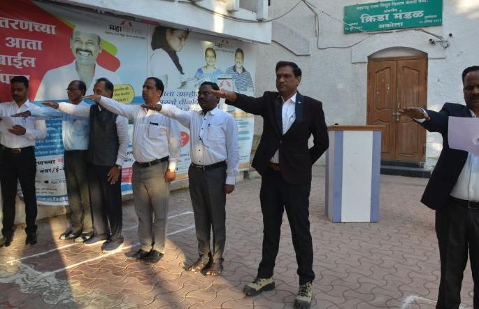 अकोला : महावितरणच्या अकोला परिमंडळाचे मुख्यालय असलेल्या विद्युत भवन येथे ७१ वा प्रजासत्ताक दिन मोठ्या उत्साहात साजरा करण्यात आला. मुख्य अभियंता अनिल डोये यांच्या हस्ते ध्वजारोहन करण्यात आल्यानंतर संविधानाच्या उद्देशिकेचे सामुहीक वाचन करण्यात आले. अकोला परिमंडळातील महावितरण अधिकारी-कर्मचाऱ्यांनी वीज ग्राहकांना दर्जेदार, सुरक्षित, तत्पर आणि अखंडित सेवा देऊन राष्ट्र विकासाला अधिक गती देण्यासाठी काम करावे असे आवाहन मुख्य अभियंता अनिल डोये यांनी केले.यावेळी मुख्य अभियंता अनिल डोये तथा अधिक्षक अभियंता पवनकुमार कछोट यांच्या हस्ते प्राविण्य प्राप्त २३ कर्मचाऱ्यांच्या पाल्यांना शिष्यवृत्तीचा धनादेश व पुष्प देऊन गौरविण्यात आले. तसेच यावेळी नागपुर येथे पार पडलेल्या राष्ट्रीय क्रीडा स्पर्धेत सुवर्ण पदकाची मानकरी ठरलेली सहाय्यक अभियंता कोमल पुरोहीत तसेच रजत पदक प्राप्त शरद भोसले, तंत्रज्ञ किशोर धाबेकर, निम्नस्तर लिपिक हसनोद्दीन शेख, शिपाई शुभम मात्रे यांचा यावेळी सत्कार करण्यात आला. कार्यक्रमाचे प्रास्ताविक, संचालन वरिष्ठ व्यवस्थापक शिवाजी तिकांडे यांनी केले. प्रजासत्ताक दिनाच्या या कार्यक्रमाला कार्यकारी अभियंते प्रदीप पुनसे, प्रशांत दाणी, गजेंद्र गडेकर, प्रणाली विश्लेषक राजेश दाभने, उपमुख्य औधोगिक संबंध अधिकारी विशाल पिपरेसह अधिकारी कर्मचारी मोठ्या संख्येंने उपस्थित होते.