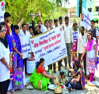 सिलिंडर दरवाढीच्या निषेधार्थ काँग्रेसचे आंदोलन
