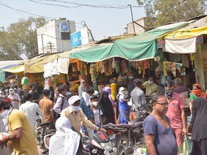 Lockdown in Akola रविवारी दिवसभर घरात बसलेल्या नागरिकांनी साेमवारी बाजारात चांगलीच गर्दी केली.