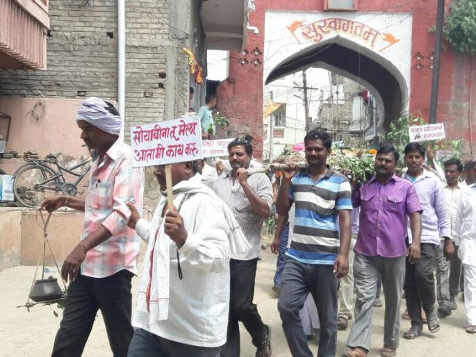 या प्रेतयात्रेत प्रत्येक शेतकर्याच्या हातात सोयाबीनचे झाड असल्याचे दिसून आले. अंत्ययात्रेप्रमाणेच समोर एकजण तिरडी घेऊन चालत होता. हजारोंच्या संख्येने शेतकरी या अभिनव आंदोलनात सहभागी झाले. सरकारविरोधात घोषणाबाजी करत ही प्रेतयात्रा संपूर्ण गावात फिरविण्यात आली. या प्रेतयात्रेत ‘सरकार आमचे आसू पुसणार का?’, ‘सोयाबीन खल्लास तर शे तकरी खल्लास!’ असे अनेक फलक फडकवित व विविध घोषणा देत ही प्रेतयात्रा गावातून काढून बेसिक शाळेच्या मैदानात त्या प्रेताला मुखाग्नी देण्यात आली. यावेळी सर्वांनी श्रद्धांजली अ र्पण केली. वाय. एस. पठाण, प्रकाश कंडरकर, रमेश बावणे, गुलाम रसूल, अहमद शेख इब्राहिम शेख, जिल्हा परिषद सदस्य डॉ. हिंमतराव घाटोळ, श्यामलाल लोध, सदानंद भुस्कुटे, राजू अवचार, शरद सरप, अरुण घाटोळ राजकुमार घाटोळ, पप्पू संगोकार, पांडुरंग कातखेडे, गोपाळ काळे, गोपाल दशमुखे, गुलाब लोखंडे, सुभाष जढाळ, विनायक पोटदुखे, शेख अनिस, प्रकाश पटीलखेडे, सागर सरप, माजी उपसरपंच सईद अली व गावातील वृद्ध शेतकरी मोठय़ा संख्येने उपस्थित होते.