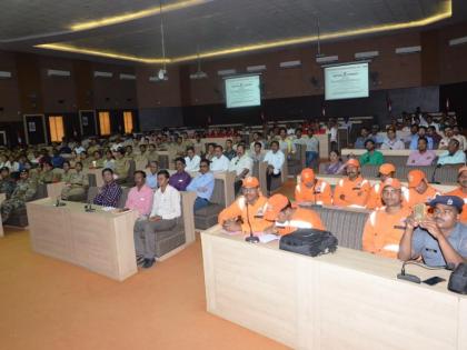 एनडीआरएफ (नॅशनल डिझास्टर रिस्पॉन्स फोर्स) पथकातील अधिकारी व जवानांनी उपस्थिताना यावेळी मार्गदर्शन केले. यावेळी निवासी उपजिल्हाधिकारी श्रीकांत देशपांडे, तहसिलदार राजेश्वर हांडे, मुख्य अग्नीशमन अधिकारी ठाकरे, एनडीआरएफ टीम कंमाडर जे. मुरमू, मनिषकुमार, श्री. मोरे, बी.एन. नवले व जवान उपस्थित होते. प्रास्ताविक व उदघाटनपर भाषण देशपांडे यांनी केले.