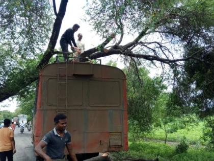 धावत्या बसवर कोसळले झाड ; ४५ प्रवासी थोडक्यात वाचले