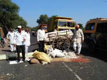 शेतकऱ्यांनी मेहनत करून पिकविलेल्या मालास हमी भाव देण्याचे आश्वासन शासनाकडून देण्यात आले असले, तरी त्यासाठीची प्रक्रिया किचकट असल्यामुळे त्याचा फायदाशेतकऱ्यांच्या पदरात पडत नाही. शासकीय खरेदी केंद्रे ही नुसती नावाचीच असल्यामुळे शेतकऱ्यांना त्यांचा माल नाईलाजाने व्यापाºयांना मिळेल त्या भावात विकावा लागतो. शासनाच्या या धोरणाचा फायदा केवळ मुठभर व्यापाºयांना होत आहे. अस्मानी व सुल्तानी संकटाने पिचून गेलेल्या शेतकऱ्यांना शासनाचे धोरण तारक ठरण्याऐवजी मारकच ठरत आहे. शेतकरी आत्महत्याचा आकडा दिवसेंदिवस वाढतच आहे. शासनाचे मात्र याकडे अजिबात लक्ष नसल्याचा आरोप करीत शासनाच्या या धोरणाचा निषेध म्हणून शेतकरी कामगार पक्षाच्या वतीने सोमवारी अकोला-आकोट मार्गावरील उगवा फाटा येथे सोमवारी सकाळी ११ वाजता शेतमालाची होळी करण्यात आली. शेकापचे राज्य चिटणीस मंडळ सदस्य भाई प्रदिप देशमुख, अकोला जिल्हा चिटणीस भाई दिनेश काठोके यांच्या नेतृत्वात करण्यात आलेल्या आंदोलनात आगर-उगवा परिसरातील शेतकरी सहभागी झाले. शेतकऱ्यांनी बैलगाडीतून सोयाबीन, ज्वारी, ओवा, तिळ, मूग, कापूस, तूर, हरभरा आदी शेतमाल भर रस्त्यावर टाकून तो पेटवून दिला. यावेळी कार्यकर्त्यांनी घोषणाबाजीही केली. रस्त्यात शेतमालाची होळी केल्याने वाहतुक अवरुद्ध होणार नाही, याची काळजीही आंदोलकांनी यावेळी घेतली.