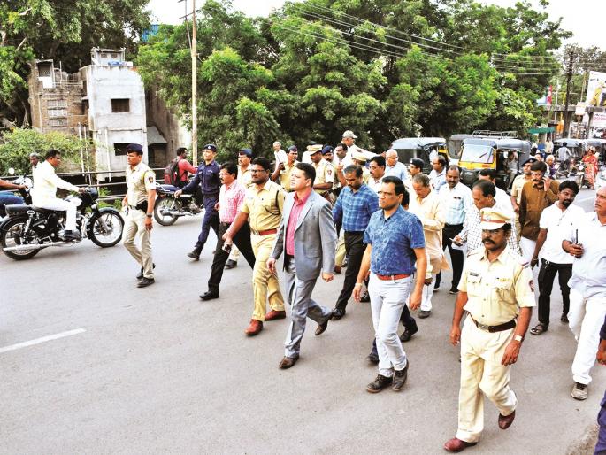 अकोला : शहरातील गणेश विसर्जन मार्गाची पाहणी करीत, रस्त्यांवरील खड्डे बुजवून गणेश विसर्जन मार्गावरील अडथळे दूर करण्याचे निर्देश जिल्हाधिकारी आस्तिककुमार पाण्डेय यांनी रविवारी संबंधित विभागाच्या अधिकाºयांना दिले.२३ सप्टेंबर रोजी शहरातील श्री गणेश विसर्जन सुरळीत पार पाडण्यासाठी जिल्हाधिकारी आस्तिककुमार पाण्डेय यांनी गणेश विसर्जन मार्गाची पाहणी केली. यावेळी जिल्हा पोलीस अधीक्षक एम. राकेश कलासागर, जिल्हा परिषद मुख्य कार्यकारी अधिकारी कैलास पगारे, उपविभागीय अधिकारी संजय खडसे, सार्वजनिक बांधकाम विभागाचे अधीक्षक अभियंता गिरीश जोशी, कार्यकारी अभियंता मिथिलेश चौहान, महावितरणचे अधीक्षक अभियंता पवनकुमार कछोट, तहसीलदार विजय लोखंडे, सार्वजनिक गणेश उत्सव मंडळाचे अध्यक्ष अॅड. मोतीसिंह मोहता, सचिव सिद्धार्थ शर्मा यांच्यासह संबंधित विभागाचे अधिकारी उपस्थित होते.जिल्हाधिकाºयांनी गणेश विसर्जन मार्गाची पाहणी करीत, २३ सप्टेंबरपूर्वी शहरातील गणेश विसर्जन मार्गावरील खड्डे बुजविण्यासोबतच नाल्यांची दुरुस्ती केबल व टेलिफोनच्या जोडण्या (वायर) हटवून अडथळे दूर करण्याचे निर्देश दिले. गणेश विसर्जन मिरवणुकीस कोणत्याही प्रकारचा अडथळा निर्माण होता कामा नये, अशा सूचनाही जिल्हाधिकारी आस्तिककुमार पाण्डेय यांनी संबंधित विभागाच्या अधिकाºयांना यावेळी दिल्या.प्रत्येक प्रभागात पाण्याचे टाके ठेवा!पर्यावरणाच्या रक्षणासाठी तसेच भाविकांच्या सुविधेसाठी शहरातील प्रत्येक प्रभागात गणेश विसर्जनाकरिता तात्पुरत्या स्वरूपात पाण्याचे टँक (टाके) ठेवण्याच्या सूचना जिल्हाधिकारी आस्तिककुमार पाण्डेय यांनी महानगरपालिकेच्या संबंधित अधिकाºयांना दिल्या.गणेश विसर्जन मार्गाची अशी केली पाहणी!शहरातील गणेश विसर्जन मार्गाच्या पाहणीत जिल्हाधिकाºयांनी सिटी कोतवाली चौक, जयहिंद चौक, दगडी पूल, अगरवेस, मामा बेकरी, टिळक रोड, जुने अकोट स्टॅन्ड, सुभाष चौक, सिटी कोतवाली मार्गे गणेश घाटाची पाहणी केली.