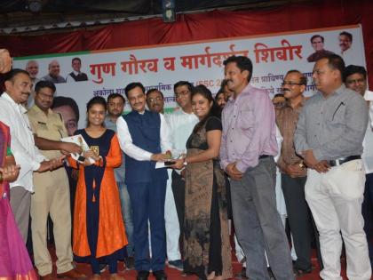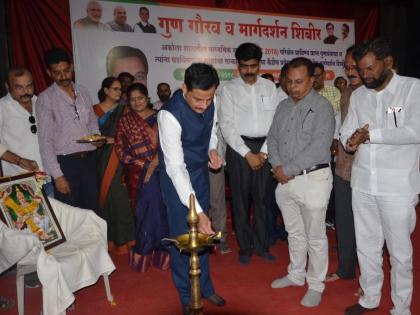 सर्वप्रथम पालकमंत्री यांनी दिप प्रज्वलन व सरस्वती पुजन करून शिबीराचे उदघाटन केले. यावेळी पालकमंत्री डॉ. रणजीत पाटील यांच्या हस्ते एन.आय.आय.टी. मध्ये 500 च्या वर गुण मिळालेल्या , सीईटी /जेईई मध्ये प्राविण्य मिळविणा-या, व दहावीच्या परिक्षेत प्राविण्य मिळविलेल्या कला , वाणिज्य, विज्ञान शाखेतील गुणवंत विदयार्थ्यांचा सत्कार गुलाब पुष्प , स्मृतीचिन्ह व प्रमाणपत्र देऊन करण्यात आला. तसेच गरीबीवर मात करून व आत्महत्याग्रस्त शेतक-यांच्या पाल्यांचा विशेष सत्कार यावेळी करण्यात आला. कलाशाखेत बारावीच्या परिक्षेत सई व जुई या जुळया बहिनींना 84.98 टक्के इतके सारखे गुण प्राप्त झाल्यामुळे त्यांचा सत्कार करण्यात आला.