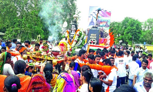 श्रावण महिन्याच्या चौथ्या सोमवारी (१४ ऑगस्ट) गांधीग्राम येथून पूर्णा नदीचे जल घेऊन आलेल्या शिवभक्तांची कावड यात्रा स्थानिक अकोला नाका येथून सकाळच्या सुमारास प्रारंभ झाली. कावड यात्रेतील पालखींवर शिवभक्त मंडळांद्वारे आकर्षक सजावट केली होती. अनेक कावडांवर भगवान शंकर, नंदी, श्रीराम, लक्ष्मण, सीता, हनुमान व गजानन महाराज आदींच्या आकर्षक मूर्तींची आरास करण्यात आली होती. त्यांचे ठिकठिकाणी महिला-पुरुष भाविकांनी पूजन करून दर्शन घेतले. अनेक शिवभक्त मंडळांनी सामाजिक विषयांवर संदेश देणारे देखावे तयार करून जनजागृती केली. काही मंडळांनी मल्लखांबावरील चित्तथरारक प्रात्यक्षिके सादर केलीत. यावेळी पारंपरिक ढोलताशे, बँड पथक आदींचा मिरवणुकीत सहभाग दिसून आला.