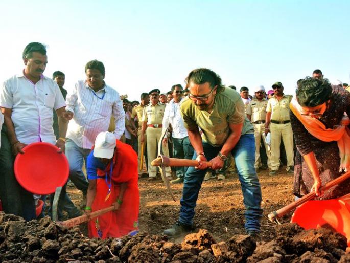 लोकमत न्यूज नेटवर्कअकोला : सत्यमेव जयते पाणी फाउंडेशनच्या माध्यमातून सुरू झालेली वॉटर कप स्पर्धा केवळ जलसाक्षरता अन् जलजागृतीपुरतीच र्मयादित राहिली नाही, तर या स्पध्रेतून सांघिक भावना, श्रमदानाचे महत्त्व वृद्धिंगत झाले आहे. या स्पर्धेसाठी अभिनेता आमिर खान याने २३ एप्रिल रोजी खंडाळा येथे भेट देऊन श्रमदान केले. त्याच्या या कर्तृत्वाने श्रमदानच ‘अमीर’ झाले असून, ग्रामस्थांमध्ये उत्साह संचारला आहे. ग्रामस्थांचे श्रम, आवश्यक साहित्यासाठी दानशुरांची मदत व पाणी फाउंडेशनच्या प्रशिक्षित कार्यकर्त्यांचे ज्ञान, अशी त्रिसूत्री या स्पध्रेची असून, या स्पध्रेमुळे जलसंधारणाचे नवे पर्व राज्यात सुरू झाले आहे. या स्पर्धेत सहभाग घेणार्या गावातील श्रमदानाची दखल घेत अभिनेता आमिर खान भेट देत असतो. गेल्या वर्षी आमिर खान यांनी ९ मे रोजी पातूर तालुक्यातील चारमोळी आणि शिर्ला येथे भेट दिली होती. या दोन्हीही गावांना पुरस्कार मिळाले आहेत. यावर्षीही अकोला जिल्ह्यातील चार तालुक्यांमध्ये वॉटर कप स्पर्धेसाठी श्रमदान सुरू आहेत. जिल्ह्यात श्रमदानाची चळवळ रुजत असतानाच आमिर खान याने खंडाळा येथे केलेल्या श्रमदानामुळे ग्रामस्थांचा उत्साह शिगेला पोहोचला आहे. सोमवारी सायंकाळी आमिर खान यांचे आगमन होताच, श्रमदान करणार्यांचा उत्साह वाढला. तेथे उपस्थित प्रत्येकाने आपल्या हातात टिकास, फावडे, टोपले घेऊन श्रमदान केले. आमिर खान यांच्या आजच्या कृतीने श्रमदानाला त्यांनी ‘अमीर’ केल्याचा भास झाला. आमिर खान यांनी श्रमदात्यांबरोबर १0 ते १५ मिनिटे श्रमदान केले. यावेळी आमिर यांच्याबरोबर त्यांच्या पत्नी किरण राव यांनीही श्रमदानात सहभाग घेतला.