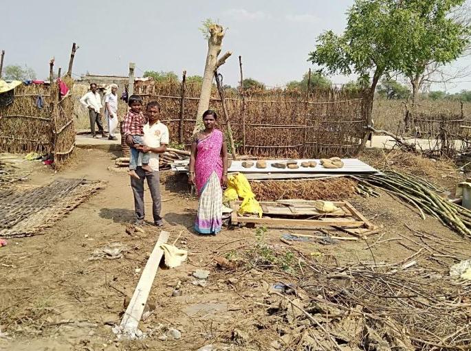 खेट्री : पातुर तालुक्यातील पिंपळखुटा येथे अचानक आलेल्या वादळामुळे शेतमजुराचा घर कोसळल्याची घटना रविवारी २९ मार्च रोजी रात्री १२ वाजता घडली. या घटनेमध्ये शेतमजूर मंगेश नागोराव मालोकार यांचे घर पूर्णपणे उद्ध्वस्त झाला आहे.त्यामुळे, त्यांचा संसार उघड्यावर आला आहे.पिंपळखुटा परिसरात रविवारी रात्री वादळासह अवकाळी पाउस झाला. वादळामुळे मंगेश मालोकार यांचे घर उद्धवस्त झाले. घराचे दोन दरवाजे, पंखा, टीव्ही,मोबाईल, टिन पत्रे, आदि साहित्याचे नुकसान झाले. तसेच घरातील गहू, तूर, डाळ, व इतर घरगुती साहित्य भिजल्याने हजारो रुपयांचे नुकसान झाले आहे. त्यामुळे मंगेश मालोकार यांचा संसार उघड्यावर आला आहे. गावकऱ्यांनी पुढाकार घेऊन त्यांना श्रीकृष्ण ज्ञान मंदिरामध्ये राहण्यासाठी व्यवस्था केली आहे. घटनेची माहिती मिळताच पातुरचे तहसीलदार दीपक बाजड यांच्या आदेशानुसार तलाठी एस. बी. भराळी, जी. व्ही. लाड यांनी तत्काळ घटनास्थळ गाठून पंचनामा केला आहे. मालोकार यांना प्रशासनाने तातडीने मदत करण्याची मागणी होत आहे. (वार्ताहर)कोरोमुळे मदतीत अडथळाकोरोना व्हायरसमुळे संचारबंदी सुरू असल्याने कुटुंबाजवळ कोणीही जायला तसेच मदत करायला तयार नाही. त्यामुळे मंगेश मालोकार यांच्यासमोर जीवन जगण्यासाठी एक मोठे आव्हान आहे. त्यामुळे तत्काळ नुकसान भरपाई मिळण्याची त्यांना अपेक्षा आहे.तहसीलदारांच्या आदेशानुसार पंचनामा केला असून, अहवाल तहसील कार्यालयात सादर करू.मालोकार यांना लवकरात लवकर मदत मिळवून देण्यासाठी प्रयत्न करण्यात येईल.एस. बी. भराळी, तलाठी