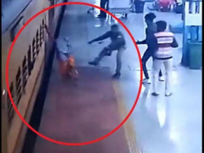 रेल्वेतून उतरण्याची घाई नडणार तोच रेल्वे पोलीस मदतीला धावला, महिला थोडक्यात बचावली, घटना सीसीटीव्ही कॅमेरात कैद