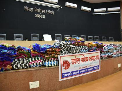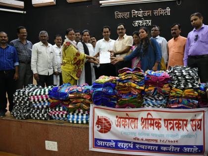 अकाेला श्रमिक पत्रकार संघाच्या समाजिक कार्याचा श्रीगणेशा नारीशक्तिीच्या हस्ते पूग्रस्तांसाठी ब्लंॅकेट्सचे िवतरण करुन करण्यात अाला. पत्रकारसंघाच्या महिला प्रतिनिधी िनशाली पंचगाम, संगिता पातूरकर, करूणा भांडारकर, निलम तिवारी यांनी मदतीचा तपशील असलेले पत्र िजल्हाधिकारी िजतेंद्र पापळकर व िजल्हा परिषदेचे मुख्य कार्यकारी अधिकारी अायुष प्रसाद यांना ब्लंॅकेट्सह सुपुर्द केले. िजल्हाधिकाऱ्यांनी ही मदत तातडीने पूरग्रस्तांपर्यंत पाेहाेचवण्याचा अादेश संबंधित अधिकाऱ्यांना दिला. त्यानुसार अधिकाऱ्यांनी हालचालीही सुरु केल्या.