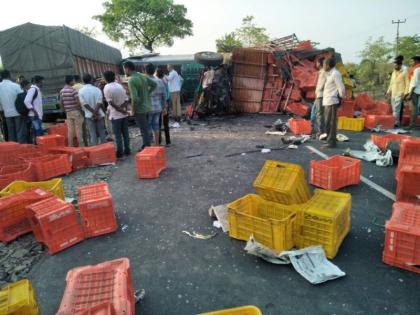 अकोला राज्य महामार्गावर दोन ट्रक व लक्झरी बसचा रिधोराजवळ भीषण अपघात झाला.