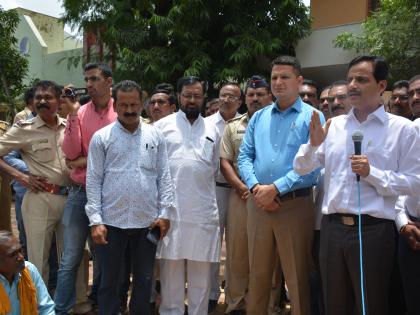 मराठा आरक्षणाच्या मागणीवरून मराठा क्रांती मोर्चाच्या पुकारलेल्या आंदोलनाची धग राज्यभरात धुमसत आहे. गोदावरीत काकासाहेब शिंदे या तरुणाने जलसमाधी घेतल्यानंतर संपूर्ण राज्यात आंदोलनाने पेट घेतल्याचे दिसून आले. २५ जुलै रोजी मराठा क्रांती मोर्चाने पुकारलेल्या बंदला जिल्हावासीयांनी उत्स्फूर्तपणे पाठिंबा दिल्याचे चित्र होते. बंददरम्यान जिल्हाधिकारी कार्यालयासमोर मराठा क्रांती मोर्चाच्या समन्वयकांनी मराठ्यांच्या मागण्या पूर्ण होईपर्यंत मुख्यमंत्र्यांना जिल्हा बंदी करण्याचा ठराव मंजूर केला होता. त्यानंतर मराठा क्रांती मोर्चाने त्यांचा रोख जिल्ह्यातील मराठा समाजाचे खासदार, मंत्री, आमदार यांच्याकडे वळविला आहे. समाजाच्या लोकप्रतिनिधींनी आरक्षणाच्या मुद्यावर शासनाकडे ठोस भूमिका मांडण्यासाठी क्रांती मोर्चा आग्रही आहे. त्यानूषंगाने १ आॅगस्ट रोजी खासदार व आमदारांच्या घरासमोर आंदोलन केल्यानंतर शनिवार, ५ आॅगस्ट रोजी सकाळी ११ वाजता पालकमंत्री डॉ. रणजीत पाटील यांच्या घरासमोर ठिय्या आंदोलन करण्यात आले. यावेळी आंदोलकांनी ‘एक मराठा-लाख मराठा’, ‘असा कसा देत नाही- घेतल्या शिवाय राहत नाही’, ‘तुमचे आमचे नाते काय- जय जिजाऊ जय शिवराय’, अशा घोषणा दिल्या. त्यानंतर डॉ. रणजीत पाटील यांनी आंदोलकांची भेट घेऊन त्यांनी मराठा आरक्षणाप्रतीची सरकारची भूमिका विषद केली. यावेळी त्यांनी आंदोलकांनी विचारलेल्या प्रश्नांची उत्तरेही दिली.