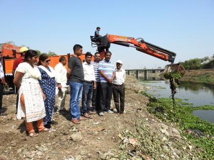 नगरसेविका उषाताई विरक यांचा मुलगा जसवीर सिंह विरक यांनी एक क्रेन विकत घेऊन त्यावर जाळीचा पिंजरा तयार केला व जलकुंभी काढण्याचे काम सुरू केले आहे. या यंत्राचे प्रात्यक्षिक आज मोर्णा नदीत जलकुंभी काढून दाखविण्यात आले.