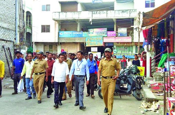 अकोला: शहराच्या मुख्य बाजारातील व्यावसायिक, दुकानदारांनी थेट रस्त्यावरच बाजार थाटल्याने सर्वसामान्य नागरिकांना बाजारात धक्के खात जावे लागते. धड पायी चालण्यासाठी जागा नसल्यामुळे गर्दीच्या ठिकाणी अनेकदा महिलांची छेडखानीही होते. या प्रकारामुळे अक ोलेकरांमध्ये तीव्र नाराजी पसरली आहे. ही बाब लक्षात घेता गुरुवारी महापालिका आयुक्त संजय कापडणीस यांनी जुना भाजी बाजार, गांधी चौकासह मुख्य बाजाराची पाहणी करीत रस्त्यावर अतिक्रमण थाटणाºया व्यावसायिक, दुकानदारांना सज्जड इशारा दिला. तसेच उद्यापासून या परिसरातील अतिक्रमण हटविण्याचे निर्देश अतिक्रमण विभागाला दिले.शहरातील मुख्य बाजारपेठ व परिसराला लघू व्यावसायिक, फेरीवाल्यांनी गराडा घातला आहे. मनपाच्या अतिक्र मण निर्मूलन पथकाचा धाक नसल्यामुळे फेरीवाले चक्क मुख्य रस्त्यांवर बाजार मांडतात. यामध्ये प्रामुख्याने रेडीमेड ड्रेस विक्रेते, खाद्यपदार्थांची विक्री करणारे तसेच फळ विके्रत्यांचा समावेश आहे. शहराची संपूर्ण बाजारपेठ गांधी रोड, टिळक रोड, खुले नाट्यगृह ते काश्मीर लॉजपर्यंतच्या मार्गावर स्थिरावली आहे. अतिक्रमकांच्या वाढत्या संख्येमुळे नागरिकांना रस्त्यावर धड पायी चालणे मुश्कील झाले आहे. यासंदर्भात मनपा प्रशासनासह सत्ताधाºयांकडे प्रचंड तक्रारी होत असल्या तरी त्यावर ठोस अंमलबजावणी होत नसल्याची परिस्थिती आहे. अतिक्रमणाच्या मुद्यावरून अकोलेकरांमध्ये मनपा प्रशासनाप्रती तीव्र नाराजी पसरली आहे. ही बाब ध्यानात घेता महापालिका आयुक्त संजय कापडणीस यांनी गुरुवारी जुना भाजी बाजार, कोठडी बाजार, दाणा बाजार, किराणा मार्केट, मटका बाजार, गांधी चौक, गांधी चौकातील चौपाटी आदी ठिकाणची प्रत्यक्षात पाहणी केली. यावेळी रस्त्यावर साहित्य ठेवणाºया व्यावसायिकांना व दुकानदारांना पुन्हा अतिक्रमण केल्यास कारवाईला सामोरे जावे लागेल, असा इशारा दिला.कारवाईला प्रारंभ करा!आयुक्त संजय कापडणीस यांनी मुख्य बाजाराची पाहणी केल्यानंतर अनेक दुकानदार, व्यावसायिकांनी त्यांचे टिनाचे शेड, ओटे, पायºया रस्त्यावर बांधल्याचे निदर्शनास आले. गांधी चौपाटीवर हीच परिस्थिती आढळून आली. यामुळे सर्वसामान्य नागरिकांना त्रास सहन करावा लागत असल्याचे पाहून आयुक्तांनी शुक्रवारपासून अतिक्रमण काढण्याचे निर्देश अतिक्रमण निर्मूलन पथकाला दिले.