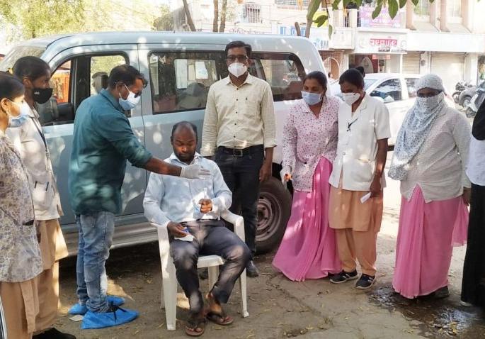 Swab of suspects by mobile van शहरात काेराेनाचा हाॅटस्पाॅट ठरलेल्या विविध भागांत संशयितांचे नमुने घेण्याला साेमवारी प्रारंभ केला.