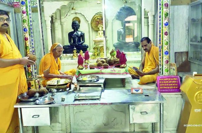 अकोला : स्थानिक जुने शहरस्थित श्री १००८ पार्श्वनाथ दिगंबर जैन मंदिरात जैन धर्मियांचे महान पर्व ‘पर्युषण पर्व’ उत्साहात संपन्न झाले. या पर्वाचा समारोप श्री सम्मेद शिखरजी पूजनाने करण्यात आला. कोरोना विषाणूचा संसर्ग लक्षात घेता दररोज आॅनलाइनद्वारे भक्तांना घरी बसूनच भगवंतांचा नित्य अभिषेक विधी व इतर पूजनाचा लाभ देण्यात आला.जैन धर्मियांमध्ये ‘पर्युषण पर्व’ म्हणजे आत्मशुद्धीचे पर्व समजल्या जाते. या पर्वात जैन भाविक उत्तम क्षमा, मार्दव, आर्जव, सत्य, शौच, संयम, तप त्याग, आकिंचन, ब्रह्मचर्य या दशधर्माचे पालन करून आत्मकल्याण साधण्याचा प्रयत्न करतात. तसेच शास्त्र वाचन, प्रवचन आदी धार्मिक कार्यक्रमांची रेलचेल असते; परंतु यावर्षी कोरोना संक्रमणाचा प्रभाव लक्षात घेता या मंदिरचे उपाध्यक्ष संदीप दिनेश उनवणे यांनी पुढाकार घेऊन भाविकांना आॅनलाइनद्वारे घरच्या घरी भगवंताचे दर्शन, पूजन, अभिषेक यांचा लाभ व्हावा म्हणून सेवा उपलब्ध करून दिली होती.७ सप्टेंबर रोजी दरवर्षीप्रमाणे श्री सम्मेद शिखरजी पूजा विधानाचे आयोजन करून पर्यूषण पर्वाचा समारोप करण्यात आला. पूजनविधीसाठी संगीता गव्हाणे यांनी कार्यभार सांभाळला. पर्यूषण पर्वाच्या यशस्तिेसाठी मंदिरचे अध्यक्ष रवींद्र उन्होने, उपाध्यक्ष संदीप उनवणे, सचिव मधुकरराव फुलंबरकर यांच्यासह महावीर गवारे, शैलेश सोनोने, नितीन फुलंबरकर, स्वप्निल जुराफे, नितीन फुरसुले यांनी परिश्रम घेतले.फोटो