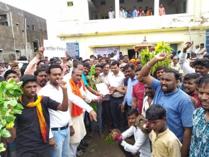 खड्डे बुजविण्याच्या मागणीसाठी शिवभक्तांचा तेल्हारा तहसिल व नगरपालिकेवर मोर्चा