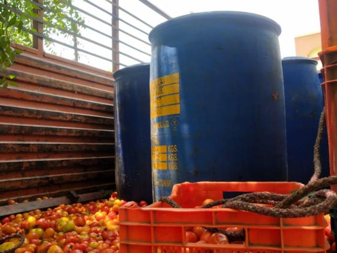 The truck was seized on suspicion of alcohol : एका ट्रकमध्ये टोमॅटोच्या कॅरेटमागे दारू असल्याच्या माहितीवरून उत्पादन शुल्क विभागाने बुधवारी ट्रक ताब्यात घेतला.