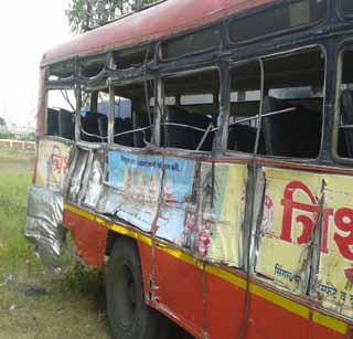 खामगाव : खामगावहून अकोल्याकडे जाणार्या एस.टी.ला समोरुन येणार्या ट्रकने धडक दिल्याने झालेल्या अपघातात २ जण जागीच ठार तर १0 जण जखमी झाले. ही घटना ३ ऑक्टोबरच्या दुपारी १ वाजेच्या सुमारास टेंभुर्णा फाट्यानजीक घडली.जळगाव खान्देश आगाराची एम.एच.५३0७, जळगाव-राळेगाव ही एस.टी.बस खामगाव बसस्थानकावरील प्रवाशी घेवून दुपारी १२.४0 वाजता अकोल्याकडे निघाली. दरम्यान टेंभुर्णा फाट्यानजीक असलेल्या अग्रवाल पेट्रोलपंपासमोर समोरुन खामगावकडे येणार्या डब्ल्यू.बी.-२३- 0५३५ क्रमांकाच्या भरधाव ट्रकने एस.टी.ला धडक दिली. यामध्ये सौ.निर्मला ओंकार जावारकर (५३) रा.मोठी उमरी, अकोला व रामनारायण पिरदान बोहरा (५८) रा.खामगाव हे दोघे जण जागीच ठार झाले. तर कृष्णा लक्ष्मीनारायण बोहरा (५0), तेजकंवर पिरदान बोहरा (६५), सौ.चित्रलेखा रामनारायण बोहरा (५0), वत्सला दामोदर डिवरे (६८) रा.वडती वसाडी, लक्ष्मीनारायण पिरदान बोहरा (५६) रा.खामगाव, सोमेश्वर सहदेव वाघमारे (४५) रा.पिंपळगाव राजा, ओंकार उत्तम जावरकार (५४) रा. मोठी उमरी अकोला, तेजश्री सोमेश्वर वाघमारे (८) पिंपळगाव राजा, श्रावणी गणेश तायडे (३) रा.अकोला हे १0 जण जखमी झाले आहेत. जखमींना तात्काळ स्थानिक सामान्य रुग्णालयात उपचारासाठी भरती करण्यात आले. बसचालक मोतीराम किसन पवनकार (३५) याने ग्रामीण पोलिस स्टेशनला दिलेल्या तक्रारीवरुन पोलिसांनी ट्रक क्र.डब्ल्यू.बी.२३-0५३५ च्या चालकाविरुध्द कलम २७९,३३७,३0४ (अ) नुसार गुन्हा दाखल केला आहे.