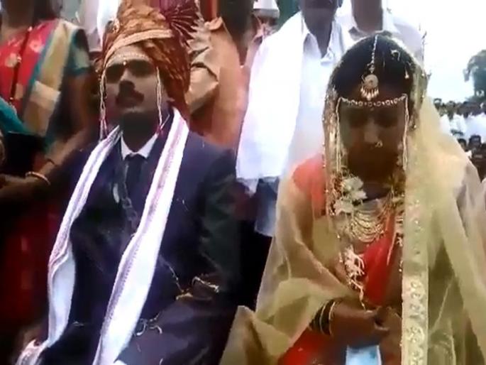 मराठा समाजाला आरक्षण मिळावे, यासाठी गेल्या काही दिवसांपासून अवघा महाराष्ट्र पेटला आहे. आजही सर्वत्र जाळपोळ आणि हिंसक आंदोलन सुरु झाले आहे. क्रांतीदिनी अनेक ठिकाणी आंदोलन भरकटले असतानाच, अकोला जिल्ह्यातील अकोट येथे चक्का जाम आंदोलनावेळी मराठा समाजातील सकारात्मक दृष्टीकोन समोर आला. शिवाजी चौकातील आंदोलनस्थळी अकोट तालुक्यातील देऊगांव येथील हरिदास गावंडे यांची मुलगी तेजस्विनी व गांधीग्राम येथील पांडुरंग अढाऊ यांचा मुलगा अभिमन्यू यांचा विवाह सोहळा थाटात पार पडला. यावेळी आंदोलनाचे स्वरुप विवाह सोहळ्यामध्ये काही काहीसाठी रुपांतरीत झाल्याचे दिसून आले. या आंदोलनात दोन्ही कुटुबीयांकडील वऱ्हाडी मंडळी सहभागी झाली होती. मराठा समाजाला आरक्षण द्या, या मागणीसह मंगलाष्टके पार पडली. वर-वधुंनीसुध्दा मराठा आरक्षणाचा नारा दिला. सदर विवाह सोहळा हा स्थानिक कास्तकार भवन या ठिकाणी 9 ऑगस्ट रोजी सकाळी पार पडणार होता. परंतु, दोन्ही कुटुंबीयांनी कास्तकार भवन असतानाही आंदोलनात सहभागी होऊन विवाह सोहळा करण्याचे ठरविले. या दोन्ही कुटुंबीयांच्या निर्णयाला सर्वच पाहुणे मंडळींनी होकार देत आंदोलनात सहभागी होऊन मराठा समाजातील सकारात्मक विचारसरणीचा संदेश दिला.