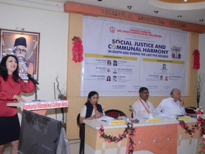 अकोला : वैश्विक स्तरावर सामाजिक न्याय प्रस्थापित करण्यासाठी स्त्रीविषयक धोरणे आणि कायदे यांची सक्त अंमलबजावणी झाली पाहिजे, असे प्रतिपादन इराक देशातील सलाहद्दीन विद्यापीठाच्या प्राध्यापिका डॉ. माहसा माश्फदेयान यांनी येथे केले. स्थानिक शंकरलाल खंडेलवाल महाविद्यालयाच्या समाजशास्त्र व अंतर्गत गुणवत्ता कक्षाच्या संयुक्त विद्यमाने ‘सामाजिक न्याय व सामुदायिक सद्भाव’ या विषयावरील आंतरराष्ट्रीय चर्चासत्र गुरुवारी पार पडले. या चर्चासत्रात बीजभाषण करताना डॉ. माहसा माॅश्फदेयान बोलत होत्या.
