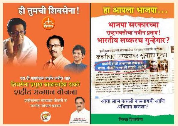 अकोला : शिवसेनाप्रमुख बाळासाहेब ठाकरे यांच्या जयंतीदिनी पक्षप्रमुख उद्धव ठाकरे यांनी आगामी निवडणुका स्वबळावर लढणार असल्याची घोषणा केली. या घोषणेनंतर युतीधर्म संपणार असे स्पष्ट झाले असतानाच त्याची सुरवात झाल्याचे प्रत्यंतर शिवसेनेने भाजपाच्या धोरणांविरोधात विदर्भात लावलेल्या पोस्टर्स मधून आले आहे. ‘ही तुमची शिवसेना ...हा आपला भाजपा’ अशी कॅच लाईन दर्शवित भाजपाला कमी दाखविण्याचा प्रकार सेनेने सुरू करून भाजपाच्या विरोधात रणशिंग फुंकले आहे.गत विधानसभा निवडणुकीपासून भारतीय जनता पक्ष आणि शिवसेनेदरम्यान कुरघोडीचे राजकारण सुरू आहे. शिवसेनेला कमी लेखण्यात भाजपाने कुठेही कसुर केली नाही. दूसरीकडे सेनेने प्रत्येक वेळी सरकारला इशारा देत वेळ मारून नेली व थेट सरकारच्या विरोधात रस्त्यावर येऊन आंदोलनाची भूमिकाही घेतली. त्यामुळेच आगामी लोकसभा व विधानसभा निवडणुका भारतीय जनता पक्ष व शिवसेना स्वतंत्र लढणार, हे संकेत होतचे ते आता स्पष्अ झाले आहे. या पृष्ठभूमीवर सेनेने ^भाजपच्या विरोधात पोस्टर वॉर सुरू करून त्यांचे रणशिंग फुंकले असून त्यासाठी शहिदांचा आधार घेतला आहे.परिवहन मंत्री दिवाकर रावते यांनी परिवहन मंडळाकडून राबवली जात असलेली दिवंगत बाळासाहेब ठाकरे शहीद सन्मान योजना व काश्मीर मध्ये भाजपा व पिडीपा सरकारने काश्मिरात लष्करी अधिकारी, कर्मचा-यांवर गुन्हे नोंदविल्याची घटना याची तुलना पोस्टरवर केली आहे. शहीद कुटुंबातील एकाला एसटी महामंडळात नोकरी व प्रवासातील सवलतीची घोषणा यातून शिवसेनेने शहिदांच्या प्रति व्यक्त केलेली भावना अधोरेखीत करतानाच भाजपाचा सहभाग असलेल्या सरकारने कश्मिरातील लष्कराविरोधातील केलेल्या कारवाईचा निषेध पोस्टरमधून केला आहे. हे पोस्टर विदर्भातील सर्वच जिल्ह्यात प्रामुख्याने झळकले आहेत.भाजपा आणि शिवसेनेने १९८९ पासून महाराष्ट्रात युती करूनच प्रत्येक लोकसभा व विधानसभा निवडणूक लढविली. अपवाद फक्त २०१४ मधील विधानसभा निवडणुकीचा! त्यामुळे आगामी लोकसभा निवडणूक स्वतंत्ररीत्या लढवायची म्हटल्यास, १९८९ पासून ज्या मतदारसंघांमध्ये निवडणूक लढवलीच नाही, त्या मतदारसंघांमध्ये प्रबळ उमेदवाराचा शोध घेण्याचे आव्हान भाजपापेक्षा शिवसेनेसमोर अधीक आहे.पश्चिम विदर्भाच्या तुलनेत पूर्व विदर्भातील वाटचाल सेनेसाठी अधिकच खडतर आहे. लोकसभेचा रामटेक व विधानसभेचा वरोरा मतदारसंघ वगळता, सेनेला पूर्व विदर्भात मोठी कसरत करावी लागणार आहे तर पश्चिम विदर्भातील अमरावती, बुलडाणा व वाशिम-यवतमाळ हे तीन लोकसभा मतदारसंघ सेनेच्या ताब्यात आहेत पूर्व विदर्भात मात्र रामटेक वगळता सेनेला कधीच यश लाभले नाही. त्यामुळे आता प्रबळ झालेल्या भाजपाला आव्