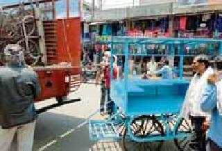 राजकमल-गांधी चौक : दोन ट्रक साहित्य जप्त लोकमत न्यूज नेटवर्कअमरावती : महापालिकेच्या अतिक्रमण निर्मूलन पथकाद्वारे पोेलिसांच्या मदतीने सोमवारी अंबादेवी मार्गावरील अतिक्रमण हटवून हा मार्ग वाहतुकीसाठी तसेच पादचाऱ्यांसाठी मोकळा करण्यात आला. सदर कारवाई राजकमल ते गांधी चौक, गांधी चौक ते परकोटालगत करण्यात आली.परकोटालगतच्या फळविक्रेत्यांच्या हातगाड्या जप्ती करण्यात आल्या. कारवाई दरम्यान हातगाड्याधारक त्यांच्या हातगाड्या घेऊन पळत असताना त्यांचा पाठलाग करून अंबागेट ते अंबादेवी मार्गावर त्यांना पकडून त्यांच्या गाड्या जप्त करण्यात आल्या. तसेच प्रभात चौक, नगर वाचनालय परिसरातील कपडे विक्रेते व रघुवीर हॉटेललगतचे खाद्य पदार्थ विक्रेते तसेच पानटपऱ्यांचे अतिक्रमण काढून साहित्य व हातगाड्या जप्त करण्यात आल्यात. याकारवाईमध्ये १५ हातगाड्या व किरकोळ साहित्य असे एकूण दोन ट्रक साहित्य जप्त करण्यात आले. या कारवाई दरम्यान वाहतूक शाखेचे पोलीस निरीक्षक ठोसरे, अतिक्रमण पथकप्रमुख गणेश कुत्तरमारे, सहाय्यक विजय गावंडे, मनपा पोलीस पथकातील पीएसआय सुनील जामनेकर व पोलीस कर्मचारी गेडाम, राजेश घुरडे, भारत बघेल, अमोल पान्हेकर, किशोर कनोजे, सतीश खंडारे, संजय कोल्हे व इतर पोलीस कर्मचारी, महिला पोलीस कर्मचारी व मनपा अतिक्रमण विभागाचे कर्मचारी उपस्थित होते. अतिक्रमण हटाओ मोहीम राबविल्यामुळे हा मार्ग वाहतुकीसाठी मोकळा झाला आहे.